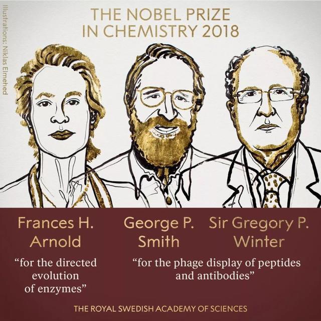 今年诺贝尔化学奖一半颁给弗兰西斯·阿诺德,奖励她实现了酶的定向进化;另一半颁发给乔治·史密斯和格里高利·温特,奖励他们实现了多肽和抗体的噬菌体呈现技术