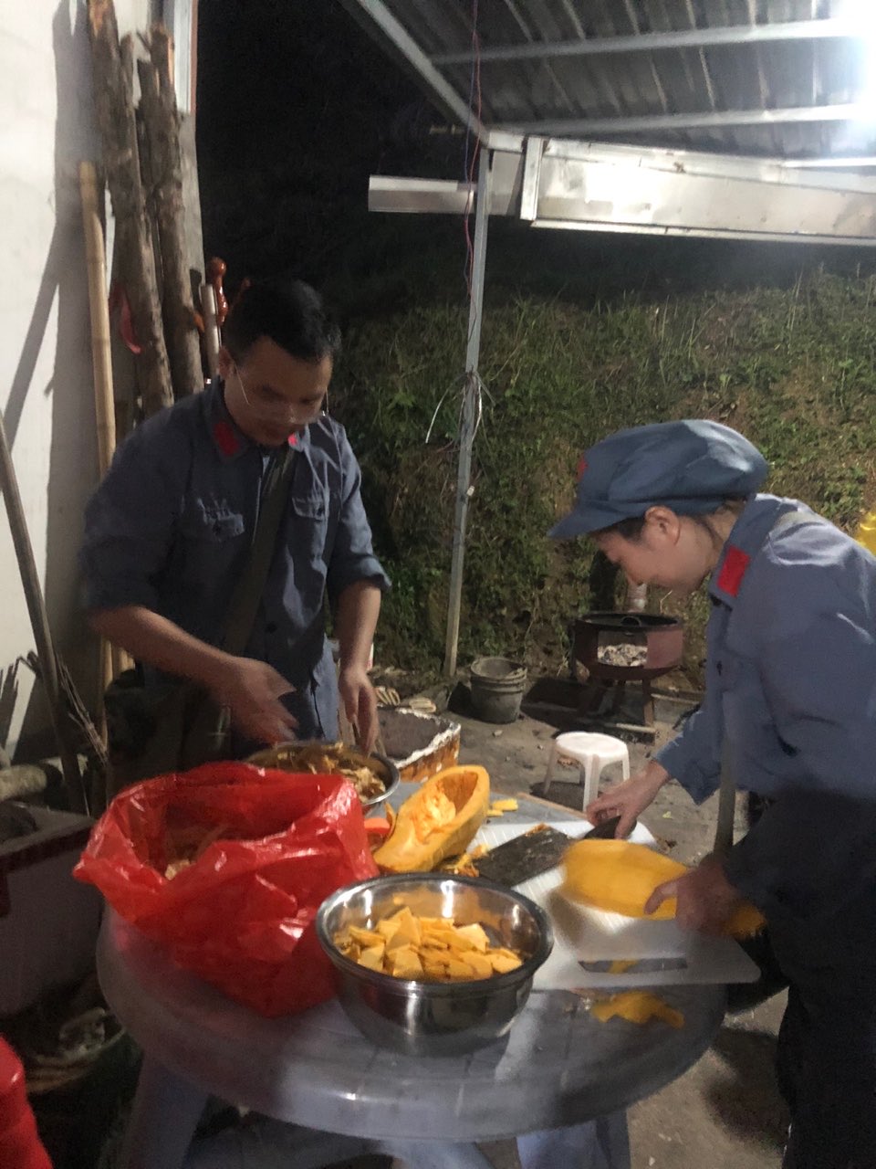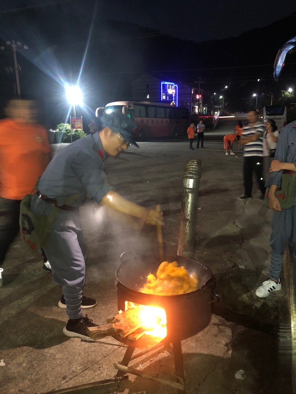 自己动手,丰衣足食。我们的团员自己切菜、做饭,给全队人员制作了美味的红军餐。