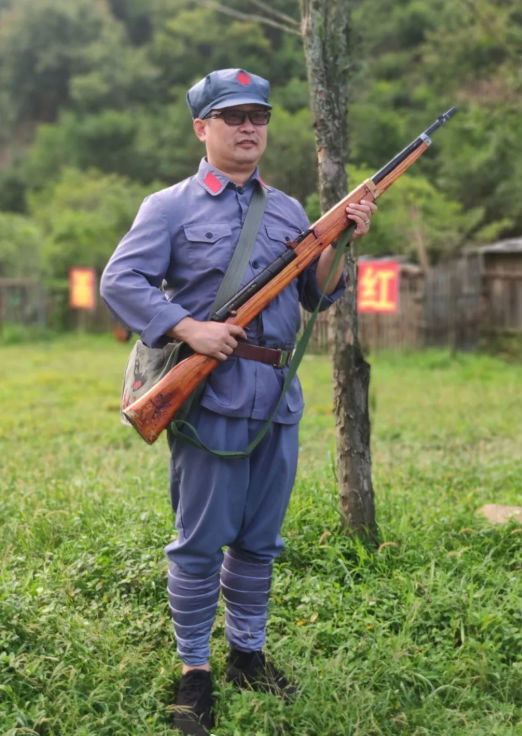 穿上红军装、戴上红军帽,扎紧标注着“八一”的腰带。我们整装待发。走一遍红军路,牢记革命的艰辛,传承红色基因。
