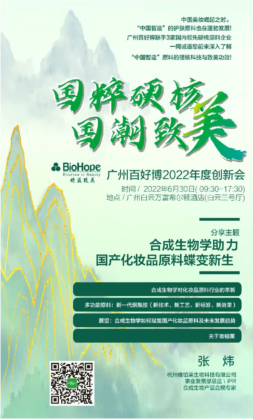届时,杭州DG视讯官网将以“合成生物学助力国产化妆品原料蝶变新生”为分享主题,多维度解密生物合成技术产业化成果——新一代烟酰胺。