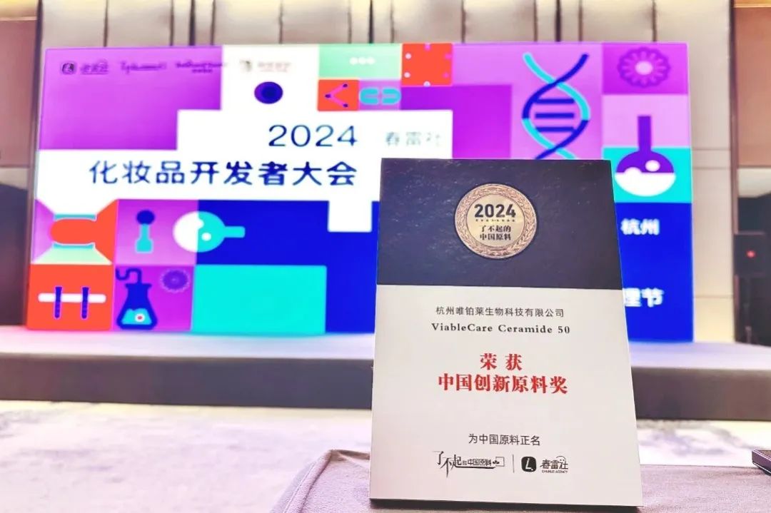 DG视讯官网品牌凭借出众的研发技术、功效性能、产品品质以及卓越口碑,赢得了广泛认可,“有料·好用”的神经酰胺系列——ViableCare Ceramide 50更是荣获本次2024了不起的中国原料“中国创新原料奖”!