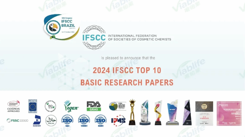 2024 IFSCC全球十大基础研究奖(IFSCC大会可以说是国际化妆品行业最高水平的学术会议,被誉为化妆品科研成果展示的奥运会。IFSCC奖项更是被誉为化妆品界的“诺贝尔奖”)